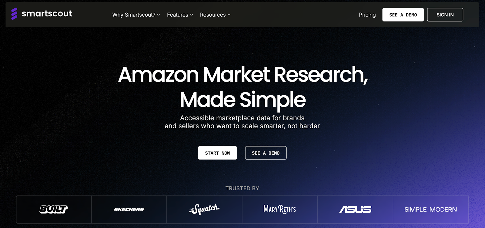 SmartScout is a market intelligence suite built for Amazon sellers who want more than basic product scouting. Instead of only showing single-ASIN metrics, it helps you analyze brands, subcategories, sellers, and products so you can validate demand, understand competitive pressure, and spot where the real opportunities live.