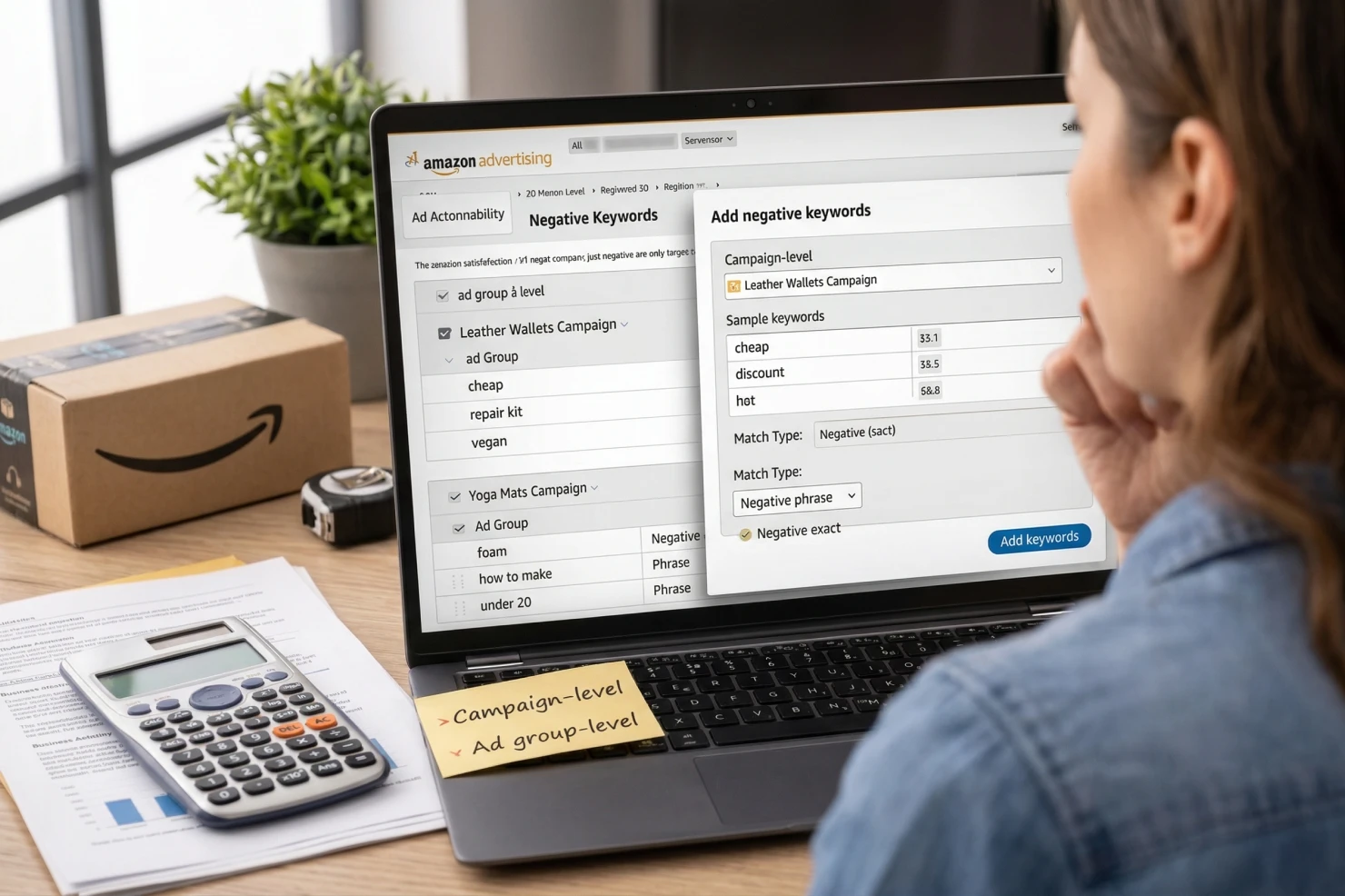 Understanding where to place negative keywords determines your campaign's efficiency and flexibility. Amazon offers two placement options, each serving different strategic purposes.