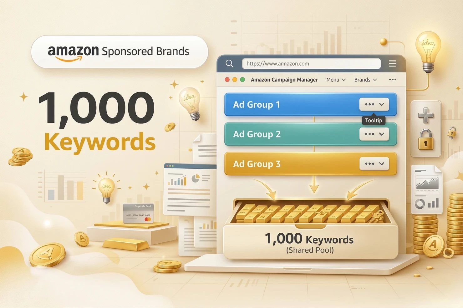 - If you create five ad groups in one Sponsored Brands campaign, they all pull from the same 1,000-keyword pool.
