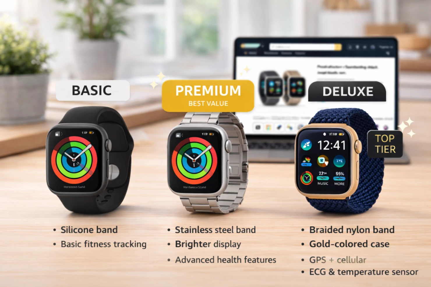 Tiered variations convert 20-30% of shoppers to higher-priced options.